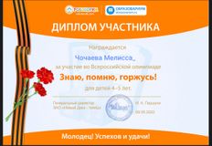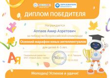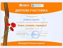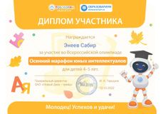 С 20 сентября - 4 октября 2022 г. 4 ребенка приняли участие в Онлайн-олимпиаде «Марафон юных интеллектуалов» и сегодня получили дипломы участника.