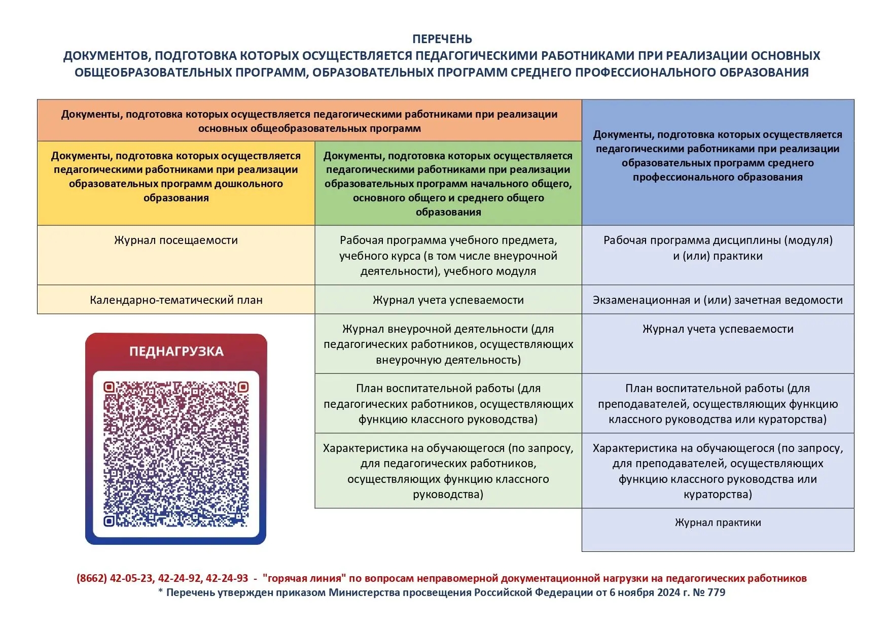 Список телефонов «горячей линии» по вопросам снижения бюрократической нагрузки в системе образования в 2025-2026 учебном году
