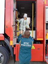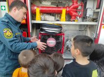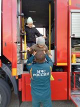 В завершение встречи воспитанники посетили пожарно-спасательную часть, где спасатели провели экскурсию по пожарной части. Инспектор пожарной части рассказал об имеющихся в распоряжении пожарной части пожарных машинах, что с ними связано, как они работают, чем оборудованы. Увидели специальные костюмы и атрибуты, которые нужны при тушении пожара. Дети узнали, что работа пожарных очень трудна, опасна, связана с риском для жизни. С огромным желанием и восхищением дети рассматривали пожарные машины, аварийно – спасательное оборудование.