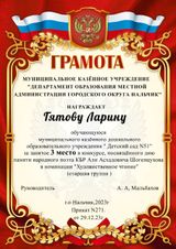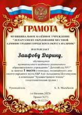 Подведены результаты городского конкурса, посвященного дню памяти народного поэта КБР Али Асхадовича Шогенцукова. Призовое 3 место заняла воспитанница старшей группы Мусова Ясмина, а с почетным первым местом мы поздравляем воспитанницу 2 подготовительной группы Заифову Дарину. Особые поздравления и благодарность их преподавателю Арсаевой М.В.