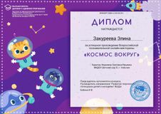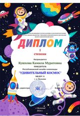 Свои знания дети подготовительных групп показали, участвуя в Республиканской онлайн-олимпиаде «Удивительный космос» и Всероссийской онлайн-викторине «Космос вокруг». Ребята получили дипломы победителей и участников.