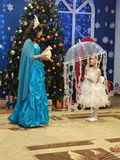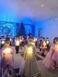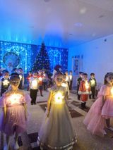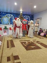 Разноцветные, сверкающие гирлянды и ярко украшенная ёлочка принесли детям ощущение чуда. С самого начала представления сказочные герои увлекали детей в волшебный мир сказки. Дети окунулись в праздничную атмосферу приключений, поучаствовали в интересных конкурсах. С появлением Деда Мороза начался настоящий праздник с песнями и танцами, хороводами вокруг ёлки.